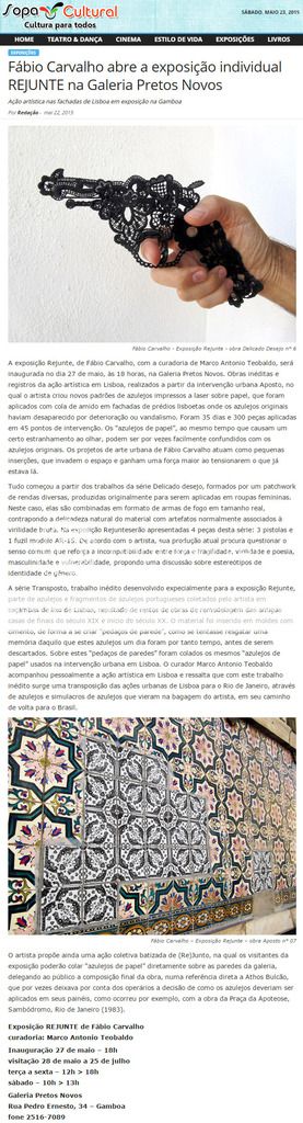 matéria sobre a exposição REJUNTE (Sopa Cultural)