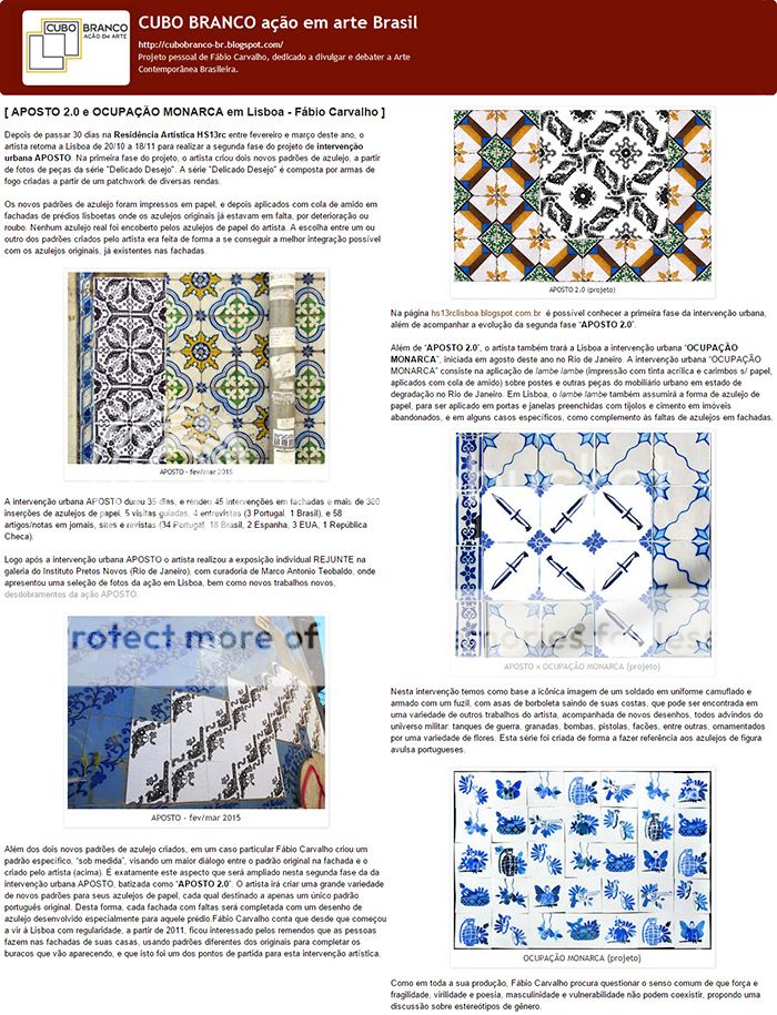APOSTO 2.0 e OCUPAÇÃO MONARCA (CUBO BRANCO ação em arte)